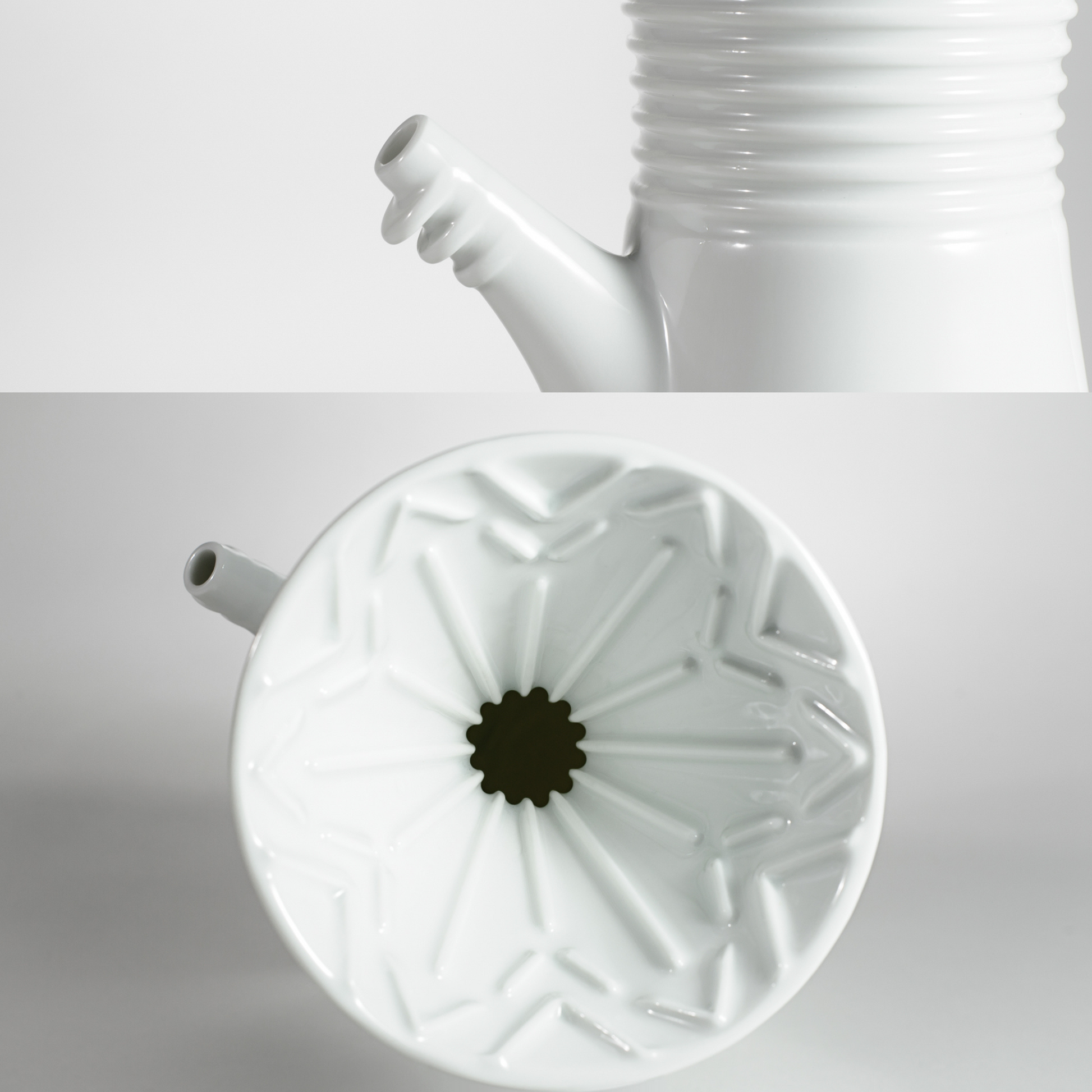 Esta cafetera ha sido diseñada en un solo cuerpo de auténtica porcelana de alta temperatura, un material puro, inocuo y resistente. Su elaboración se realiza íntegramente de forma artesanal en nuestro taller situado en el corazón de la Ribeira Sacra (Ourense – Galicia – España), mediante un proceso responsable y sostenible, convirtiéndola en una pieza de diseño y producción 100% nacional.