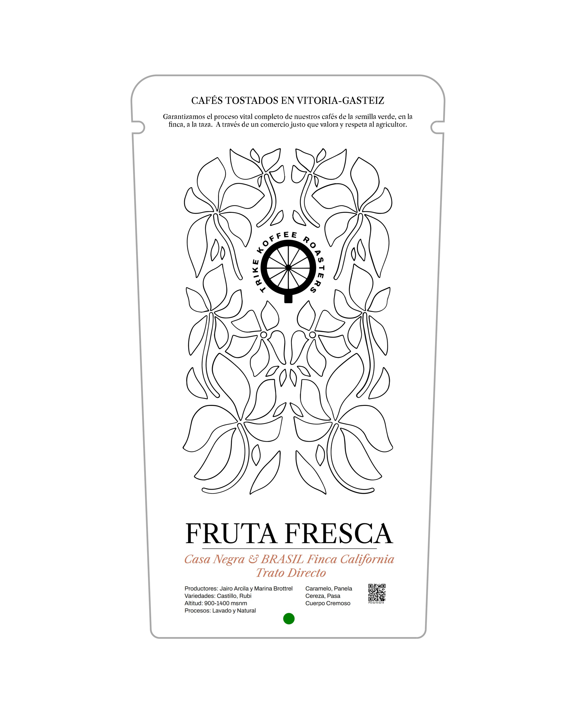 La unión de estos dos orígenes nos aporta una taza sumamente redonda, dulce con una acidez jugosa. Una taza con sabores a caramelo, panela y afrutada; cereza, pasa. En boca percibimos un cuerpo medio, cremoso, en armonía y un post-gusto agradable y duradero.